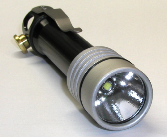 the McLux-5 is hosted on a 2x123 power tail and shown with other 2 cell lights: