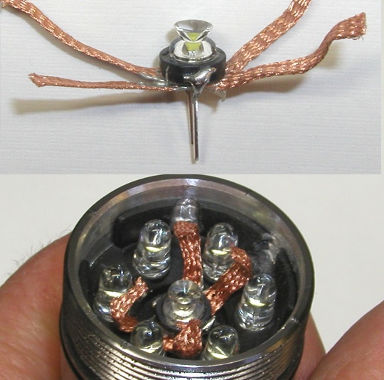 braid to the LED slug. This braid was then channeled between the LED's and bonded with more