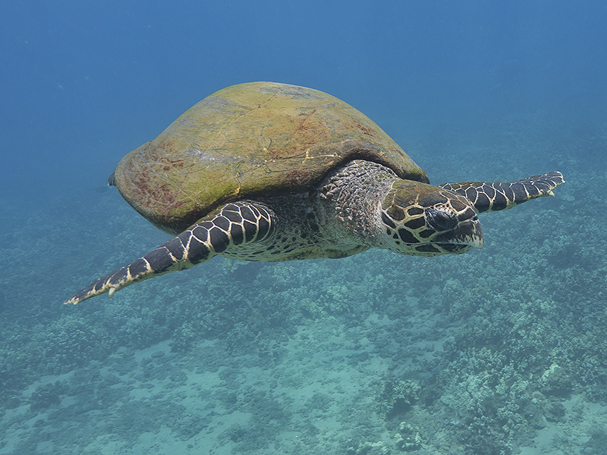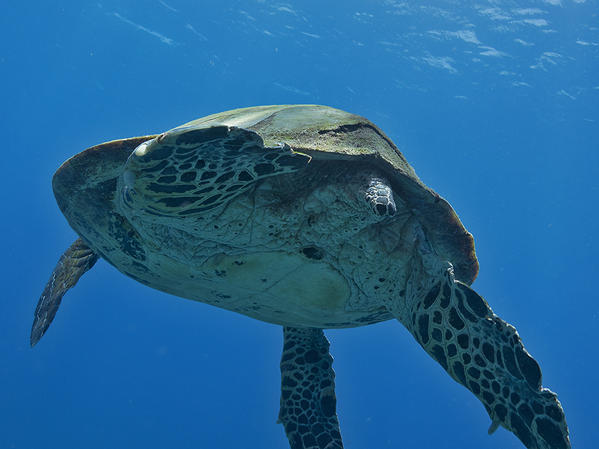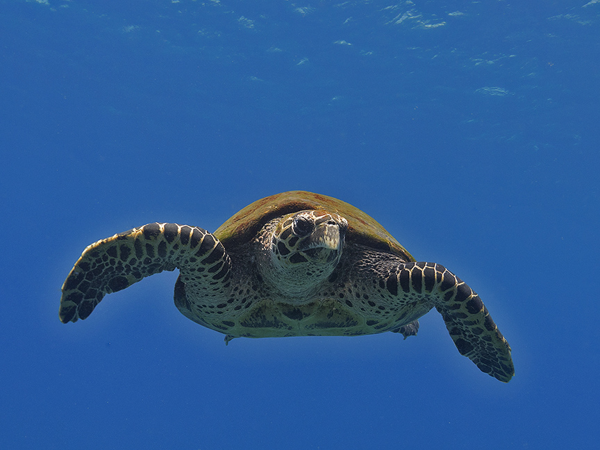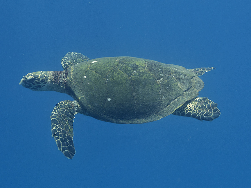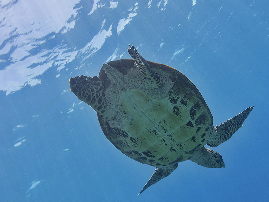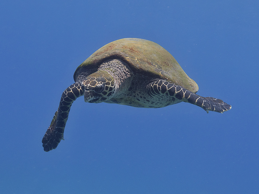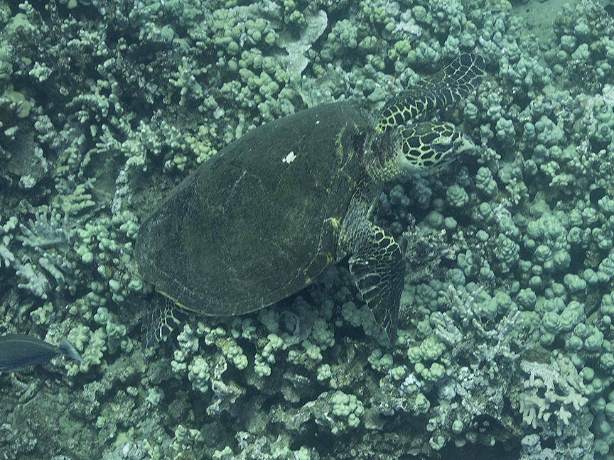 As luck sould have it, the mystery hawksbill was again in this spot and one diver got too close for her comfort