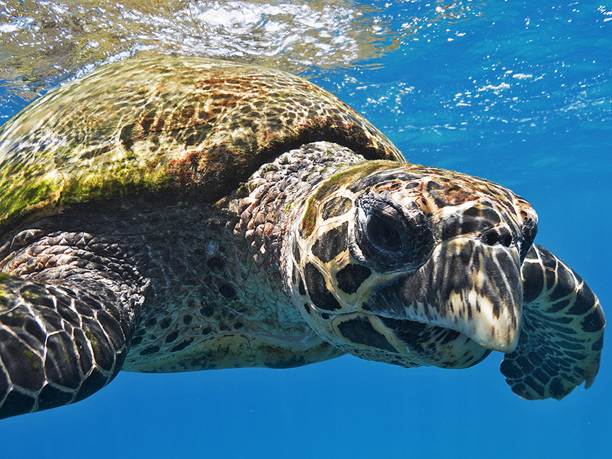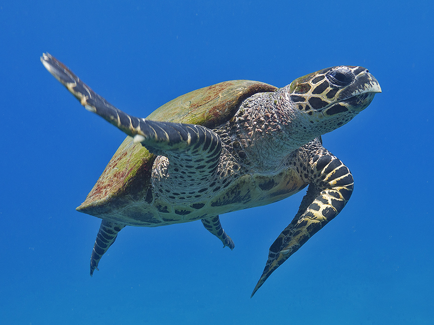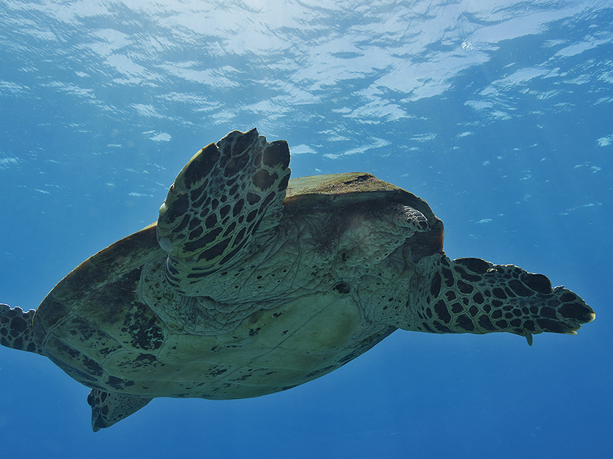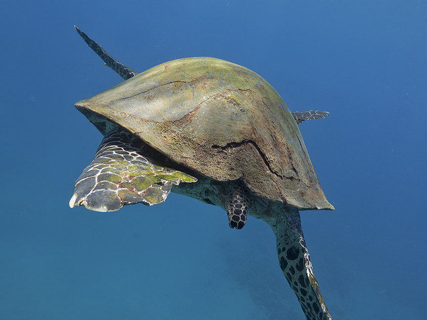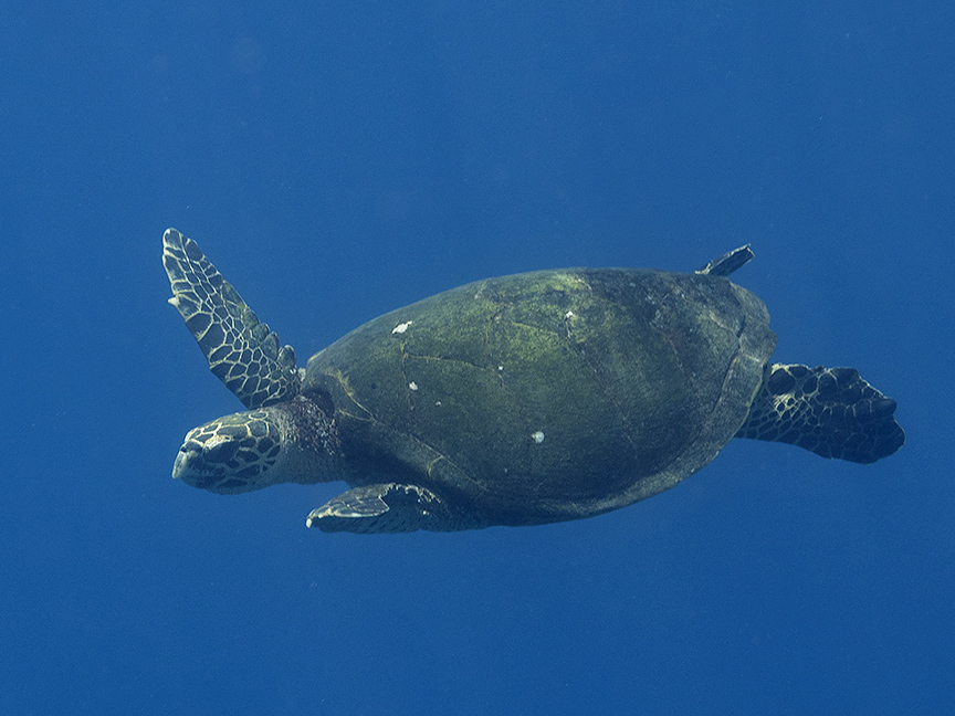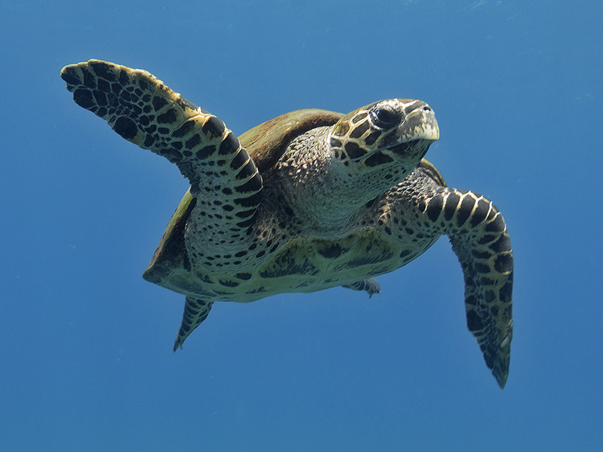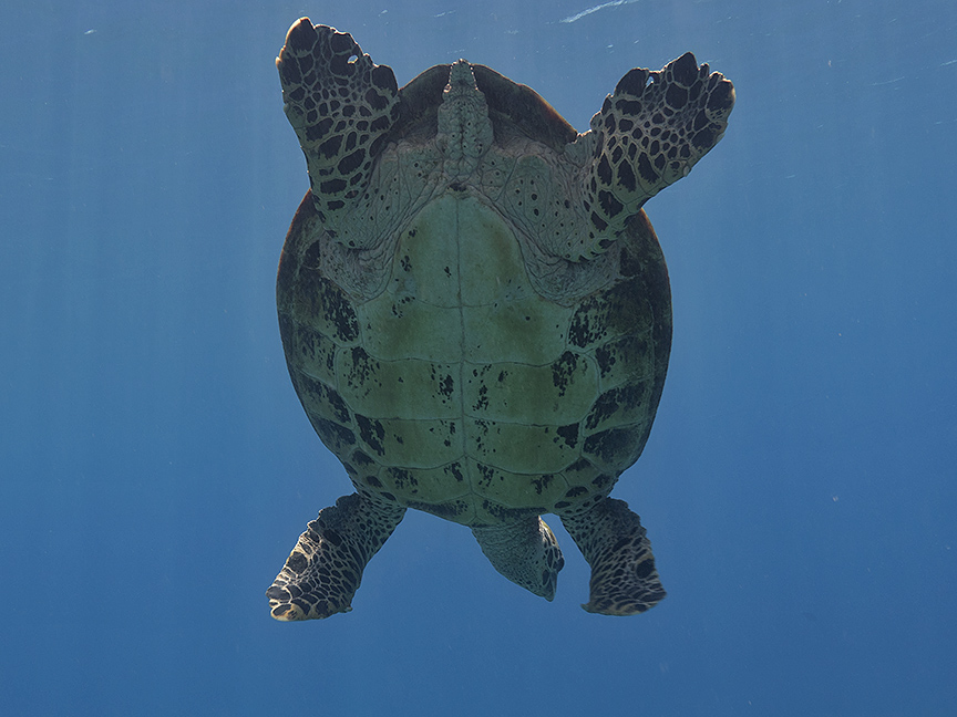 As luck sould have it, the mystery hawksbill was again in this spot and one diver got too close for her comfort