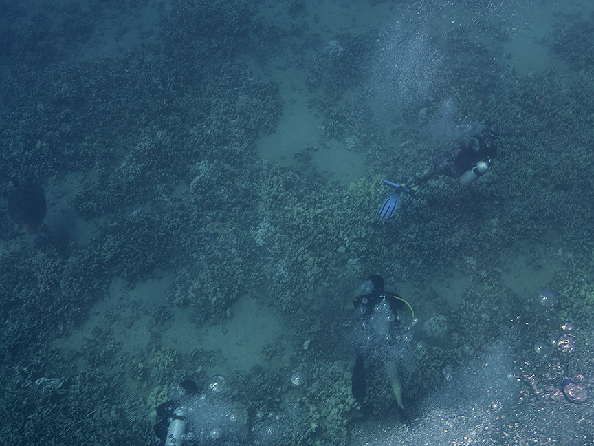 And some divers headed towards Rocket Girl's prime rest spot; the same spot I startled a mystery hawksbill the day before.