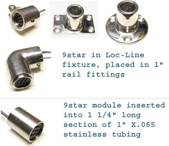 9 LEDS in 316 stainless Loc-Line type housing. Potted with epoxy & waterproof