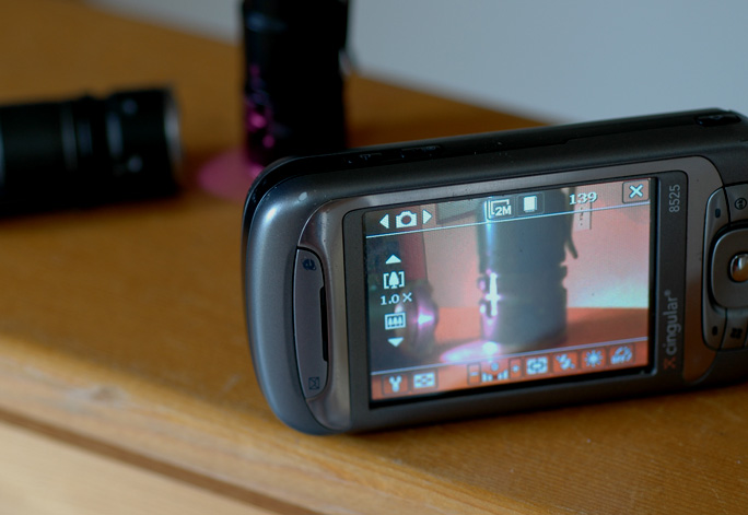 In the photo below, one of the flashlights is on and its beam is hitting the other flashlight. A phone camera is viewing the two lights and you can see that the phone camera has not filtered out the IR light and in fact the intensity of the IR light is so great that you can see it in the main photo itself which was taken with a Nikon D70 using a quality Nikon AF 60mm 2.8 lens which has some IR filtering on board.