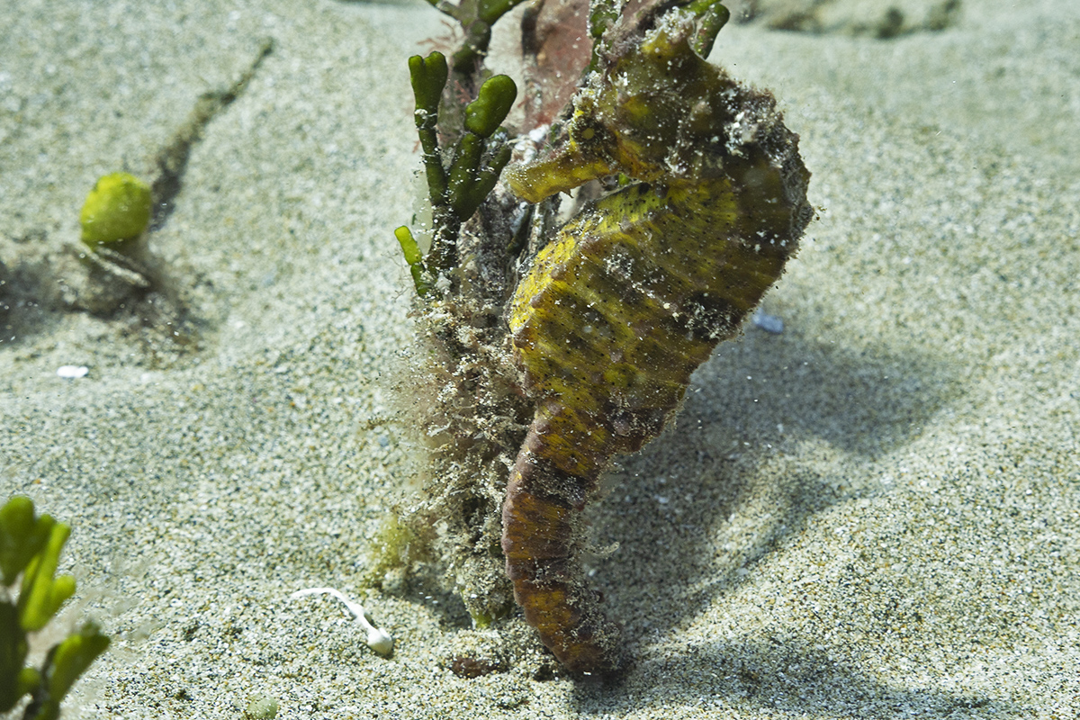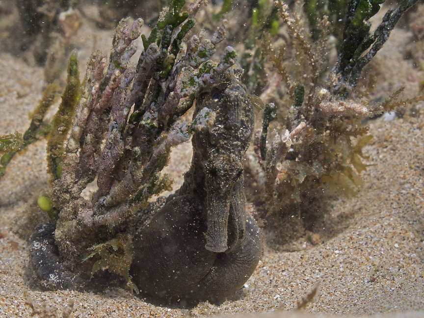 seahorse is tucked in and on a holdfast I have no desire to move it or cause it to move. If a seahorse is on the move or