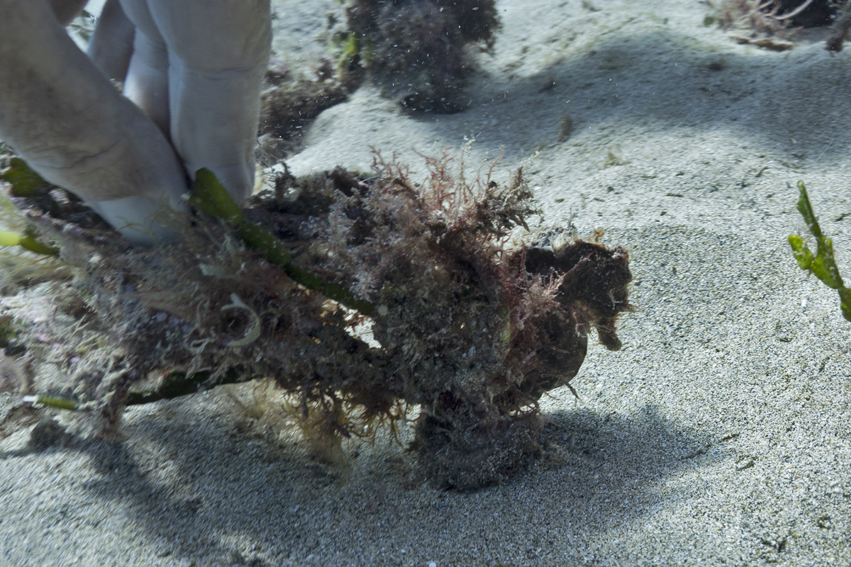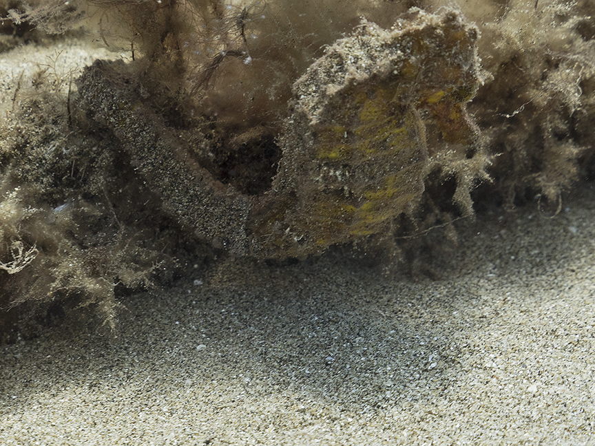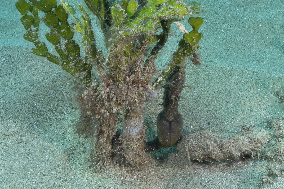 of it twisted and hooked onto the halimeda. By diving down, I was able to confirm that it was indeed a small female