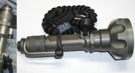 BerkeleyPoint's MCT-1 tether is shown on a SureFire E1E above and below. The 1" stainless split