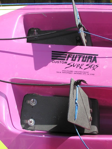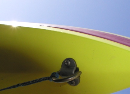 Titanium deck eye with Ti fasteners. Spectra bow line.